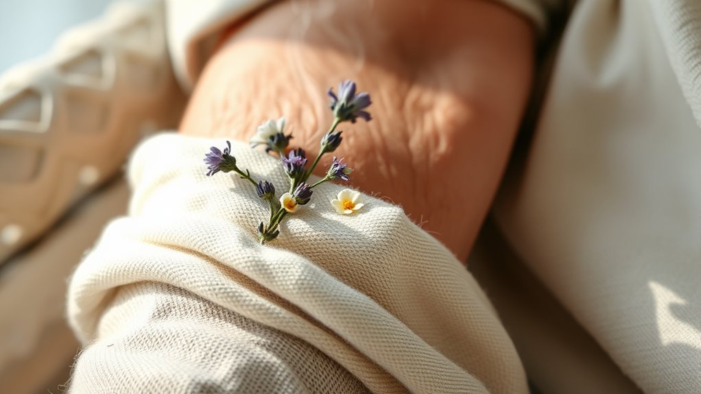 Ensuring safe application of aromatic compresses is essential for your loved one’s well-being. Always check the essential oils for skin sensitivity by doing a patch test first. Use only high-quality, pure oils, and avoid those that may cause irritation. Keep the compress at a comfortable temperature, never too hot or cold, to prevent burns or discomfort. When applying, gently place the compress on the skin, avoiding sensitive areas like the eyes or open wounds.