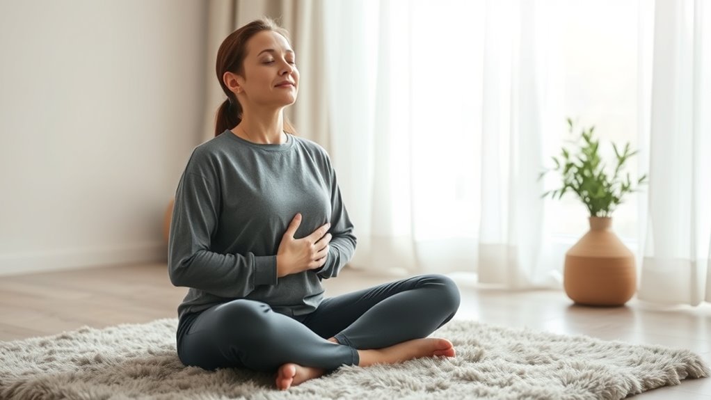 Deep breathing exercises can help break the cycle of anxiety caused by COPD symptoms. When you feel short of breath or overwhelmed, slow, deliberate breaths can calm your nervous system. To start, find a comfortable position and close your eyes if you like. Inhale slowly through your nose for a count of four, feeling your abdomen rise. Hold your breath briefly, then exhale gently through your mouth for a count of six. Focus on the sensation of your breath leaving your body. Regular practice helps reduce stress and prevents anxiety from escalating during COPD flare-ups. Incorporating breathing techniques such as relaxation techniques can further enhance your overall well-being. Consistent practice may also positively impact autonomic nervous system balance, supporting better stress management. Practicing these exercises regularly can also improve your lung capacity over time, especially when combined with other stress reduction strategies. Utilizing proper air purification methods at home can also create a healthier environment that supports your breathing exercises.