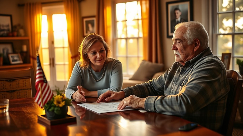 Guiding the financial benefits and compensation options available to family caregivers can greatly alleviate your burden and make certain you receive the support you deserve. The VA offers programs like the Program of All-Inclusive Assistance for Family Caregivers (PCAFC), which provides monthly stipends to eligible caregivers of severely injured veterans. You may also qualify for stipends through the Aid and Attendance pension, helping cover personal care costs. Additionally, there are employment protections, such as the Family Medical Leave Act (FMLA), allowing you to take time off without losing your job. Some veterans and caregivers might also access grants or reimbursements for respite care or specific medical expenses. Exploring these options ensures you receive the financial support needed to provide effective, sustained care. Understanding air purifier maintenance techniques can help tailor caregiving strategies to your loved one’s unique needs. Incorporating efficient general ledger coding practices can also assist organizations in managing these benefits more effectively and ensuring timely disbursements. Recognizing the importance of spiritual energy can offer emotional resilience and inner strength during caregiving challenges. Additionally, implementing targeted outreach strategies can help ensure caregivers are aware of and can access these valuable benefits.