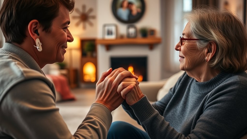 You can tell if your loved one understands your speech by watching their lip reading cues and facial expressions. If they nod or respond appropriately, they likely grasp what you’re saying. Pay attention to speech clarity, ensuring you speak clearly without shouting. Ask simple questions or for confirmation to verify understanding. Remember, patience and gentle cues help improve communication and make your loved one feel more comfortable during conversations.