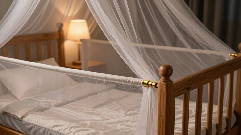 To guarantee enclosed beds are both effective and comfortable, look for enhanced safety features like secure locking mechanisms and smooth edges. You’ll also want materials that are breathable and soft to prevent discomfort during the night. When these features come together, they create a safe space that feels cozy and inviting. Additionally, choosing appropriate cleaning methods can help maintain the enclosure’s safety and hygiene over time. Incorporating ventilation and airflow control ensures proper temperature regulation and reduces condensation, contributing to a healthier environment. Regular inspection routines are essential to keep all safety features functioning optimally and to extend the lifespan of the enclosure. Paying attention to proper ventilation can also reduce the buildup of moisture and mold, further enhancing safety and comfort.
