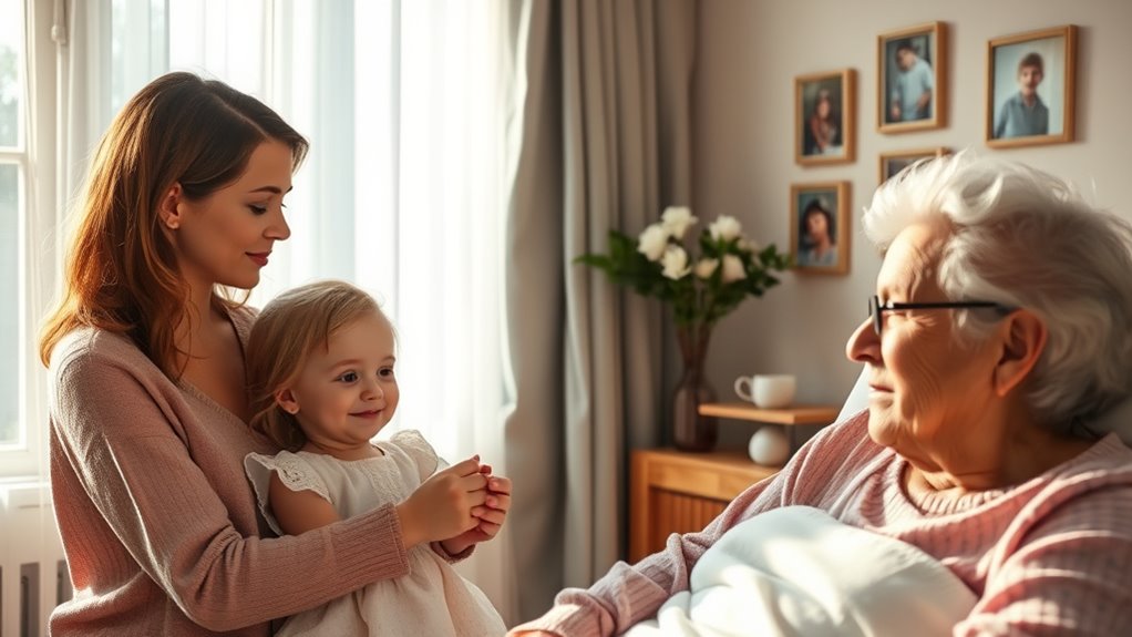 Supporting children and family through a loved one’s final days involves honest, gentle communication tailored to everyone’s needs. Respect cultural traditions and involve loved ones in legacy activities like sharing stories or recording messages. Create a safe space for children to express feelings and ask questions, and honor their emotional responses. By embracing traditions and fostering open dialogue, you help provide comfort and meaning during this challenging time—if you stay with us, you’ll discover more ways to provide support.