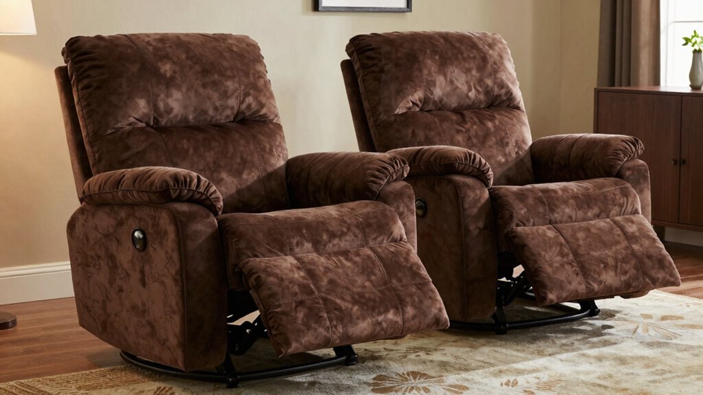 Because infinite position recliners allow you to fine-tune your seating angle, you can customize your comfort to precisely suit your preferences. This feature lets you adjust the chair to any angle within its range, providing maximum flexibility. You can recline fully for relaxation or find a slight tilt for reading or watching TV, ensuring your body stays supported and comfortable. The ergonomic design of these chairs enhances your sitting experience by promoting proper posture and reducing strain. Additionally, the aesthetic appeal of infinite position recliners means they can seamlessly blend into your home decor while offering personalized comfort. With this level of adjustability, you control your sitting experience, making every moment in your chair uniquely comfortable and tailored to your needs.