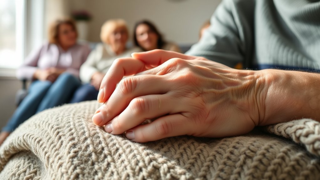 You can find emotional support beyond your healthcare provider by joining support groups and online communities dedicated to arthritis. These spaces connect you with others who understand what you’re going through, offering encouragement and shared experiences. Engaging regularly in these groups helps you feel less isolated, provides practical tips, and boosts your emotional resilience. Don’t hesitate to reach out and participate actively—support is just a click or a conversation away.