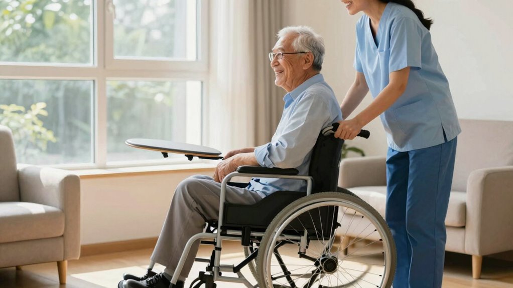 Preparing your environment and yourself is key to making transfers safer and easier. Start by evaluating your home for necessary modifications, like adding grab bars, removing tripping hazards, or installing ramps. These changes create a safer space that minimizes risks. Additionally, caregiver training is essential; ensure that anyone assisting you knows proper transfer techniques and safety precautions. Being well-prepared helps build confidence and reduces the chance of injury for both of you. Keep the area well-lit and organized, with clear pathways to prevent accidents. Regularly check your equipment and environment for hazards or needed repairs. Using space-saving techniques can help maximize your available room for safe movement. Incorporating ergonomic transfer methods can further reduce strain and increase safety during transfers. Educating yourself about transfer safety protocols can empower you to perform transfers more confidently and reduce injury risk. Investing in home modification can significantly improve safety and accessibility during transfers. Additionally, understanding proper body mechanics can help prevent caregiver injuries and make transfers easier. By making thoughtful home modifications and investing in caregiver training, you set a strong foundation for safe, efficient transfers that benefit everyone involved.