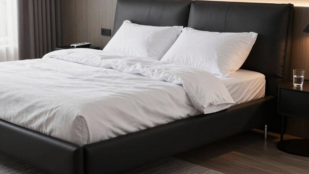 When selecting an adjustable bed base for managing leg swelling and edema, ease of remote control is a crucial factor to take into account. A user-friendly remote with large buttons and clear icons makes it simple to adjust your bed position quickly without frustration. Wireless remotes offer the convenience of making adjustments from anywhere in bed, minimizing the need to reach or shift excessively. Programmable memory buttons are a great feature, allowing you to save preferred positions for quick access, which is especially helpful for managing swelling. Additionally, backlit buttons improve visibility in low-light conditions, ensuring safe, precise adjustments at night. For those with limited dexterity, remote controls with minimal buttons and simple interfaces reduce confusion and make operating the bed easier and more comfortable.