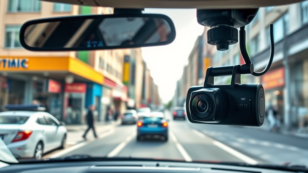 Yes, dash cams can record audio inside your vehicle, capturing every whisper and shout. I’ve found that this feature can be a double-edged sword—helpful for evidence, but sometimes intrusive or legally tricky. If you decide to activate it, check local laws first. I always recommend using the audio feature thoughtfully, as it turns your dash cam into a silent witness that’s always ready to record the story unfolding within your car.