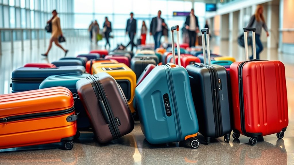 While it might be tempting to focus solely on features like USB ports, durability and material quality are just as essential for carry-on luggage. I’ve learned that high-quality luggage often uses materials like polycarbonate, ABS, or PC+ABS blends. These materials can withstand frequent handling and impacts, ensuring your bag lasts through multiple trips. Look for scratch, dent, and scuff resistance to maintain a professional appearance. Reinforced corners, sturdy zippers, and strong handles are key features that prevent early wear. Inside, reinforced seams and robust hardware support the weight of your electronics, protecting them during transit. By choosing luggage made from impact-resistant materials, you’ll enjoy reliable performance from both the USB port and the suitcase itself.