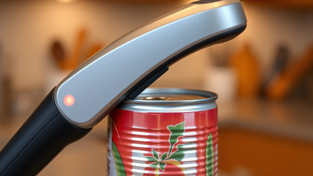 Selecting an electric can opener that handles a variety of can sizes and shapes is essential for seniors to enjoy independence in the kitchen. Look for one that can easily open small, standard, and large cans without fuss. It’s also important that the opener is compatible with different can shapes, like round, oval, or square, to maximize versatility. Confirm that it can open both regular and oversized cans without needing extra attachments or adjustments. Adjustable settings or features that accommodate various can heights and lid thicknesses add convenience. Lastly, verify that the cutting mechanism is safe and effective across different can types to prevent jams or incomplete openings. A versatile can opener simplifies meal prep and boosts confidence in handling diverse canned goods.