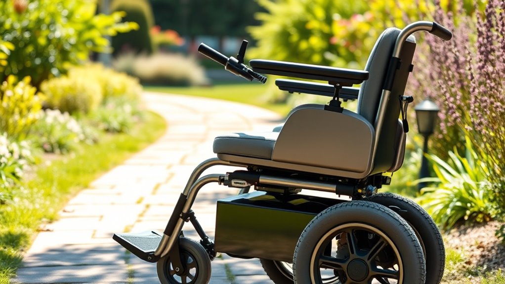 Safety features are vital for ensuring stability and preventing accidents, but equally important is how easy the wheelchair is to handle and transport. Lighter models, around 33-40 lbs, make lifting and moving much simpler for elderly users. Portability features like foldability are essential for quick storage and effortless transfer into vehicles, especially when traveling. Many wheelchairs now fold in seconds, allowing for easy setup and packing. Removable batteries further enhance portability, enabling independent charging and easier handling during transport. Additionally, a compact design supports easy maneuvering in tight spaces and fits into small storage areas. Prioritizing weight and portability ensures that the wheelchair remains convenient and manageable, giving users more independence and confidence in their mobility.