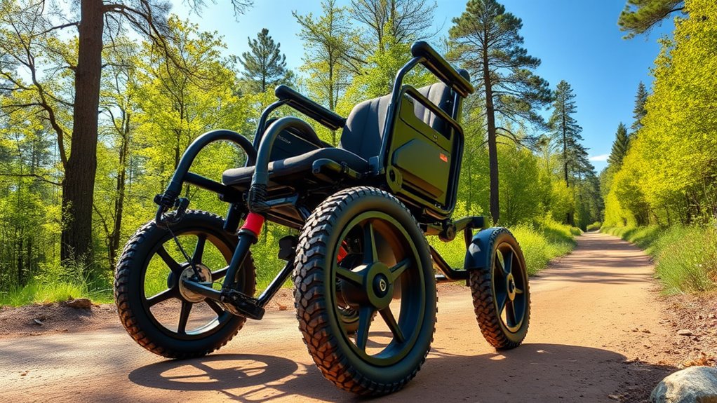 Imagine climbing a mountain trail—confidently, I can tell you that some outdoor wheelchairs are built to handle steep inclines and uneven terrain. Many models feature powerful motors, sturdy tires, and advanced suspension systems that conquer rough surfaces. While not all wheelchairs are designed for such challenges, the best off-road models can navigate steep slopes and uneven grounds, giving you independence and freedom in outdoor adventures.