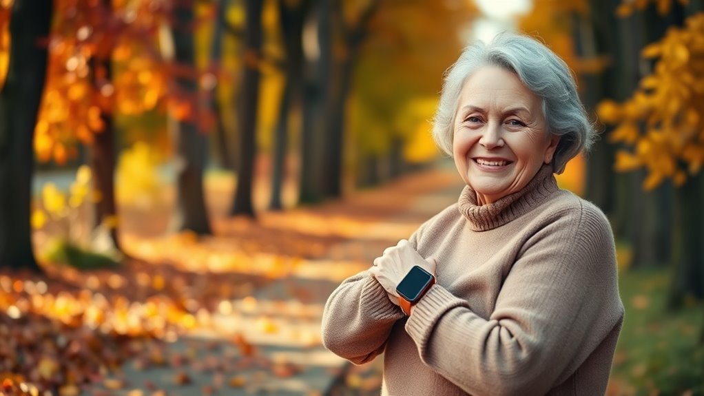 When selecting a fall detection watch for seniors, ease of use becomes a top priority. I look for devices with intuitive interfaces, large icons, and easy-to-press buttons so seniors with limited dexterity can operate them comfortably. A clear, high-contrast display helps users read alerts and navigate features without strain. Simplified operation, like one-touch emergency buttons, ensures quick help during emergencies, reducing confusion. I also consider how straightforward the setup process is, so seniors and caregivers can get started without technical difficulties. Features like voice prompts or audible alerts are invaluable, guiding users and confirming device status easily. Ultimately, a watch that’s simple to operate promotes confidence and ensures help is just a moment away when needed most.
