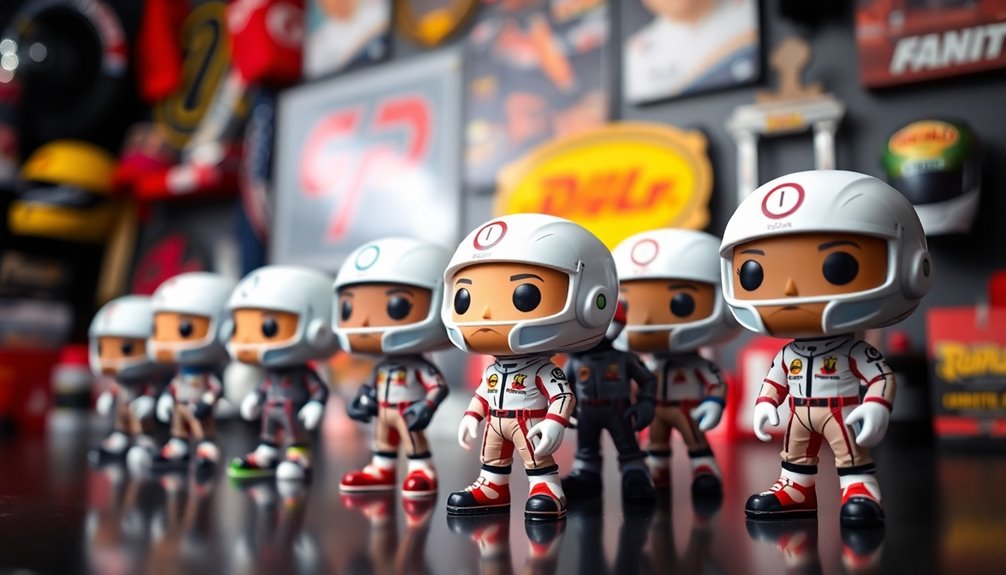 While exploring the Funko Pop! figures of Lewis Hamilton, you'll quickly notice a wide array of variants that can catch your eye. From standard racing figures to super deluxe ride versions, each one has its own unique flair. It's exciting to think about upcoming releases, like the Funko Pop! Ride Super Deluxe set to drop on October 30, 2023. Many figures showcase impressive details, like the driver's racing suit or helmets, making them even more appealing. Don't forget to look for limited edition and exclusive variants, as these often come with unique packaging that boosts their value. Plus, some variants fit into themed collections, encouraging you to hunt down other racing figures to complete your set.