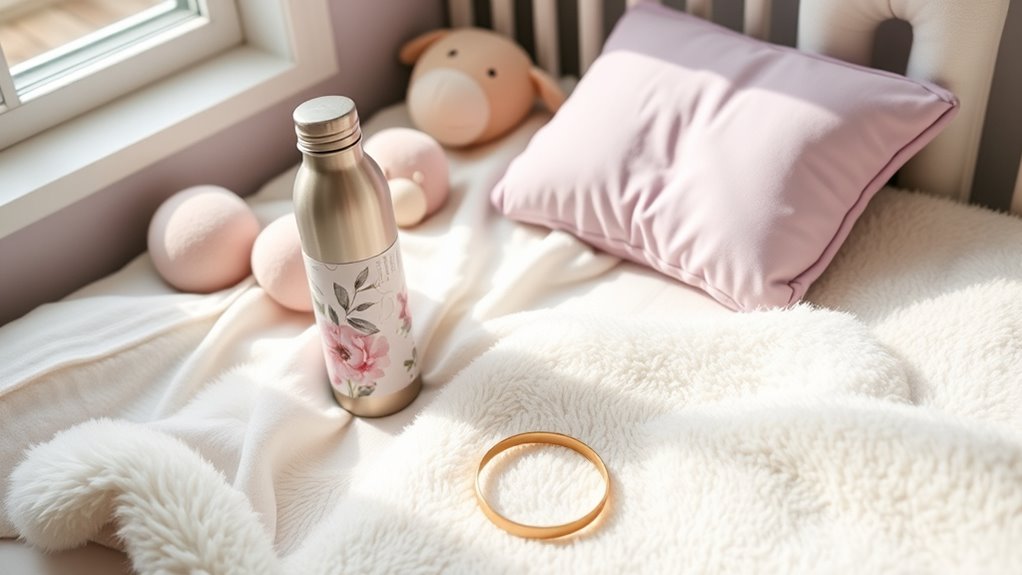 Gifts that carry emotional significance deepen the connection between a new mom and her baby, symbolizing love, support, and shared milestones. I find that personalized items with engraved messages or milestone dates become cherished keepsakes, reminding her of special moments. Thoughtful presents that acknowledge her new role can boost her confidence and help her feel appreciated during this challenging *shift*. Choosing something that reflects her personality or journey as a mom creates a meaningful emotional attachment and reinforces her identity. Sentimental gifts, selected with genuine care, can provide comfort, support, and encouragement, making her feel seen and understood. These thoughtful gestures go beyond utility—they nurture her emotional well-being and strengthen her bond with her baby.