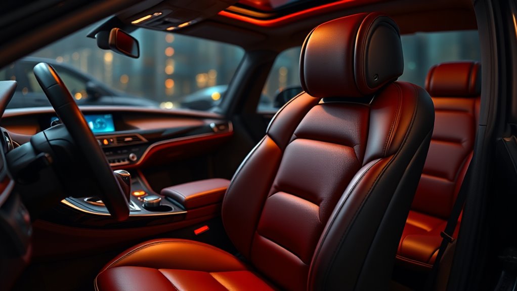 If you want to upgrade your drive with a high-end car seat massager, I’ve found several options that offer full-body relief, heat, cooling, and deep vibration massages. These devices are easy to install and customize, fitting various seat types securely. From lumbar support to targeted zones, they transform long drives into relaxing experiences. Keep exploring to discover the top models and features that will make your commute more comfortable and enjoyable.