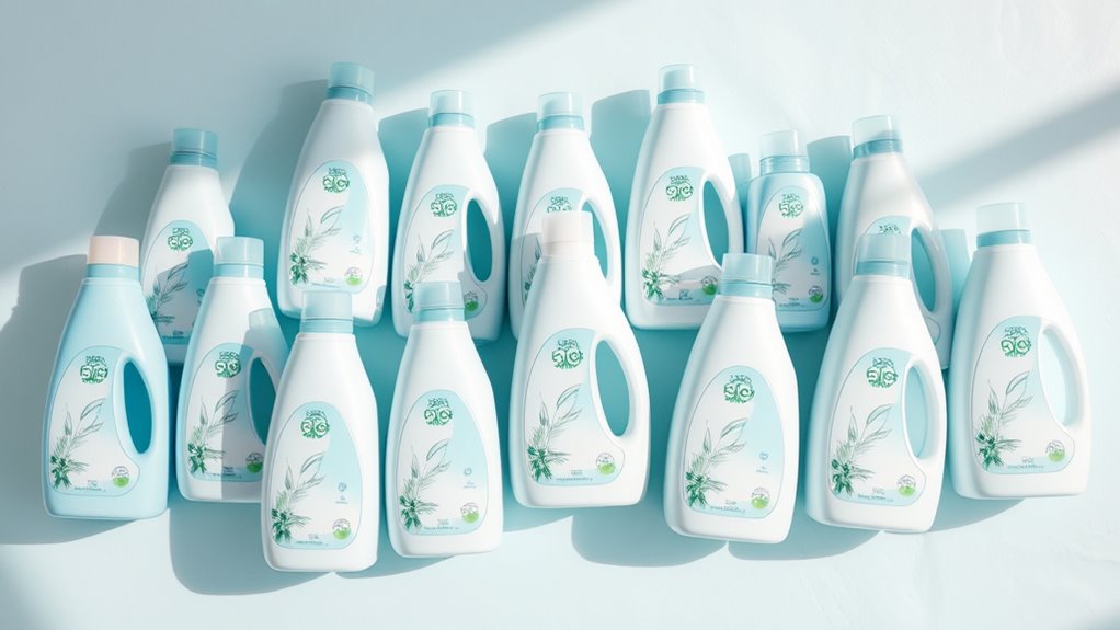 Opting for eco-friendly laundry detergents not only benefits the environment but also creates a safer, gentler experience for sensitive skin. These detergents often use plant-based ingredients, reducing chemical runoff and water pollution, which helps protect our ecosystems. Certifications from organizations like EPA Safer Choice or USDA Biobased ensure that products are biodegradable and formulated with minimal ecological impact. Concentrated formulas also cut down on packaging waste and transportation emissions, making them more sustainable overall. Additionally, choosing products free from phosphates, harsh chemicals, and artificial fragrances safeguards aquatic life from harmful contamination. Eco-conscious detergents made in renewable energy facilities and packaged in recyclable materials further support sustainability goals, making them a smart choice for both sensitive skin and the planet.