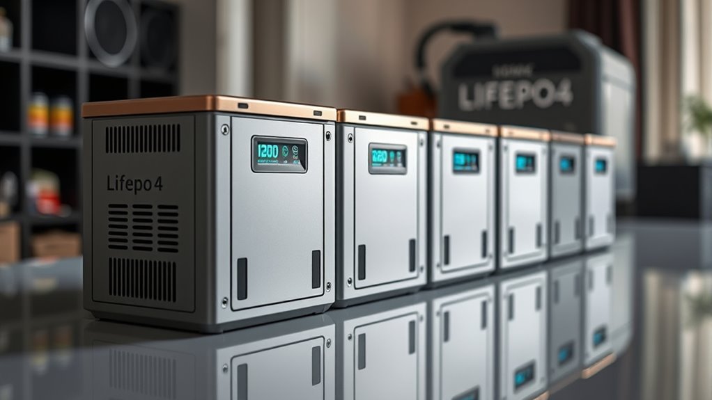Longevity and cycle life are key factors to contemplate when selecting Lifepo4 batteries for home backup. These batteries support over 4,000 deep cycles at 100% DOD, far surpassing traditional lead-acid options. Many Lifepo4 models are rated to last 8 to 15 years, depending on usage and maintenance, offering dependable long-term performance. Remarkably, some batteries retain over 80% capacity even after 10,000 cycles, highlighting their durability. Proper charging practices and avoiding extreme temperatures can further extend their lifespan. A higher cycle count not only ensures consistent power but also reduces replacement frequency, lowering long-term costs. Overall, choosing a Lifepo4 battery with impressive cycle life guarantees a reliable backup system that stands the test of time.