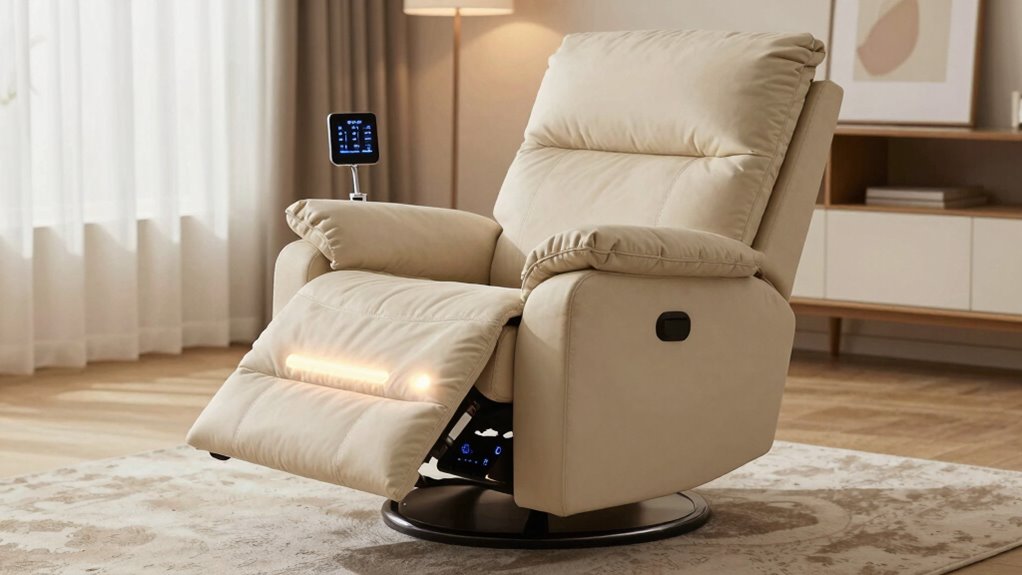 Most models do include remote controls, making it easy for you to adjust the recline, lift, heat, and massage features. I find remote controls incredibly convenient because I can customize my comfort without hassle. Some higher-end models might have additional features or controls, but generally, a remote is standard. It’s a user-friendly way to guarantee you get the perfect position and relaxation at your fingertips.