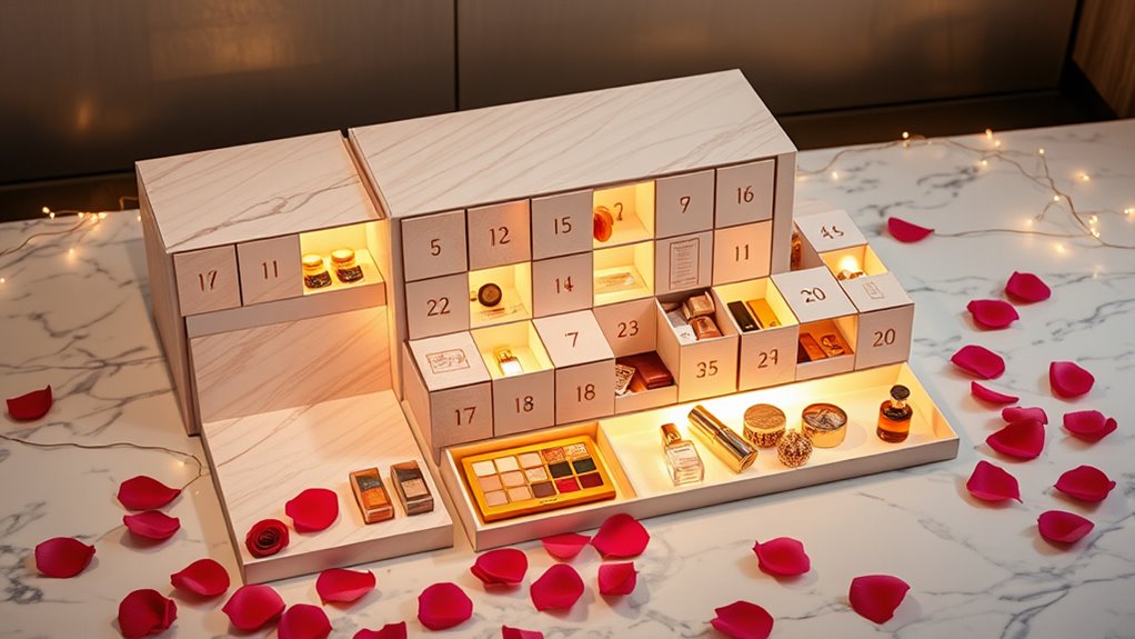 They typically don’t let you customize or choose specific items in luxury beauty advent calendars, but I always say, “Variety is the spice of life.” You’re surprised with a curated selection of high-end products, which makes each day feel like a special gift. While customization isn’t common, some brands offer limited editions or themed sets, so it’s worth checking the options to find one that matches your style and preferences.