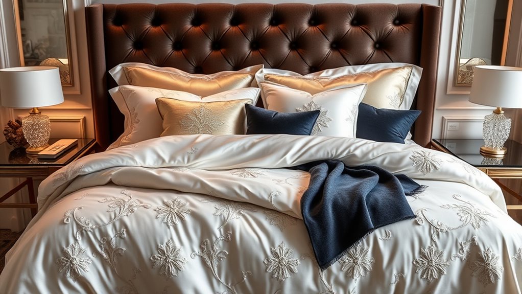 Just like upgrading a hotel room made me feel pampered every morning, choosing the right luxury bedding transforms my bedroom into a personal retreat. I once thought fancy sheets were just a splurge, but after experiencing their comfort, I realized they’re an investment in my happiness. Think of your bedding as the foundation of relaxation—when it’s right, every night feels like a luxurious getaway. Trust me, your bedroom deserves that touch of five-star comfort.