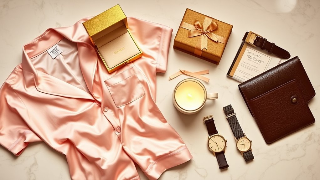 Choosing the right luxury gift for your wife depends heavily on the occasion, as it helps guarantee your present feels appropriate and meaningful. For anniversaries, a romantic and sentimental gift can deepen your connection, while practical items suit birthdays better. Consider her personal style and preferences to ascertain the gift aligns with her tastes and makes sense for the event. The significance of the occasion also matters—milestone celebrations might call for more luxurious or heartfelt choices within your budget. Additionally, match the gift’s tone to the event—whether playful, elegant, or sentimental—to reflect the moment appropriately. Think about whether she can use or enjoy the gift during the occasion itself, making it more relevant and memorable for her.