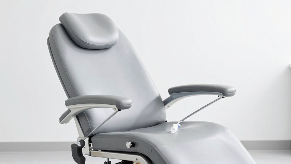 Ever wondered what makes a medical recliner truly comfortable for oxygen therapy? It’s all about the design features that support your body during long periods of sitting. Ergonomic backrests with contoured shapes and supportive cushions help reduce pressure points and prevent discomfort. Adjustable headrests, lumbar support, and multiple recline positions let you customize your seating to maintain good posture and minimize strain. Padded with multi-density foam or medical-grade materials, these chairs offer consistent comfort without sacrificing support. Additional features like built-in heating or vibration massage can boost circulation and ease muscle stiffness. And safety is key — easy-to-reach locking mechanisms and smooth recline controls guarantee adjustments are effortless and secure, giving you confidence while staying comfortable during therapy sessions.
