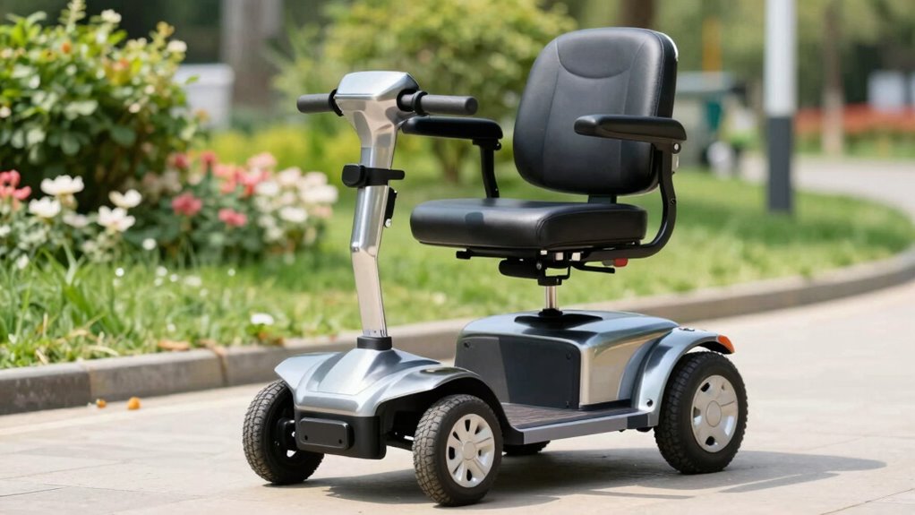 Swivel seats can slightly affect a scooter’s stability, but when designed properly, they don’t compromise balance. I’ve found that a well-engineered swivel seat, along with a sturdy base, helps maintain stability during transfers and while riding. It’s important to select models with a low center of gravity and good weight distribution. Proper use and regular maintenance also guarantee safety and stability, giving me confidence to move around comfortably.