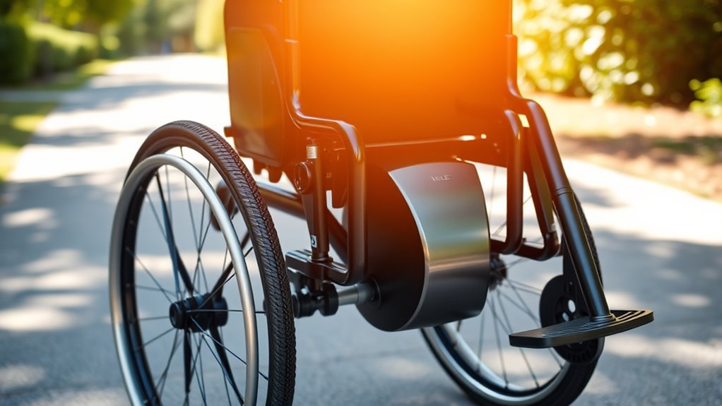 Power assist devices generally improve mobility without compromising stability, especially when properly installed. They add extra support and help distribute weight more evenly, making it easier to navigate different terrains. However, I’ve noticed that if the device isn’t fitted correctly or if the wheelchair isn’t designed to handle the added weight, balance issues can occur. It’s essential to choose compatible devices and guarantee professional installation for maximum stability and safety.