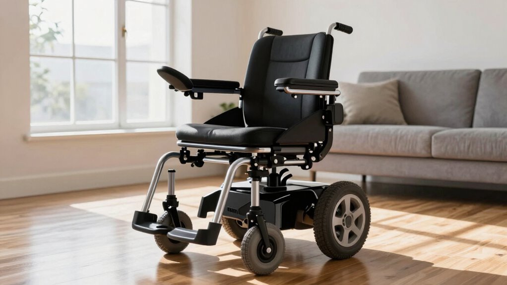 When selecting a power wheelchair for indoor use, comfort and adjustability play a vital role in guaranteeing a positive experience. Adjustable armrests and footrests make transfers easier and improve overall comfort. Customizable seat height and tilt features help you find the best posture, reducing fatigue and pressure sores during extended use. Padded, breathable cushions are essential for comfort and skin health. Easy-to-reach control panels with adjustable sensitivity provide precise maneuverability tailored to your needs. Additionally, the ability to modify seat position and backrest angle allows the chair to accommodate different body sizes and mobility requirements. Prioritizing these features ensures you stay comfortable, supported, and in control during indoor activities.