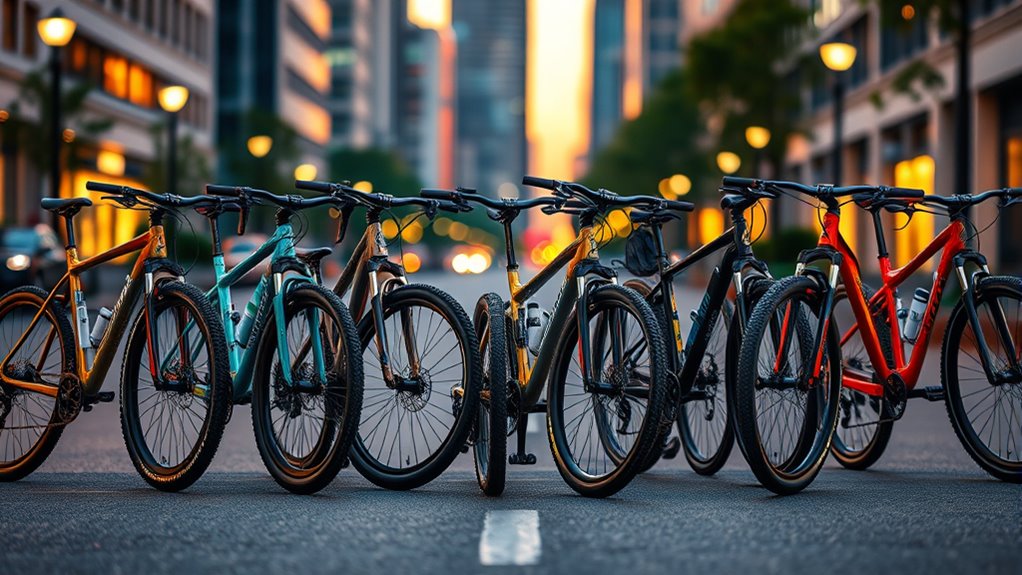 If you’re looking for the best premium bicycles on Amazon in 2025, I found a great selection of durable, high-performance bikes suited for various riding styles. From lightweight road bikes with advanced gear systems to comfortable beach cruisers and versatile mountain bikes, these options feature quality frames like aluminum alloys and steel, along with safety and comfort features. Keep exploring to discover more details and find the perfect ride for your adventures.