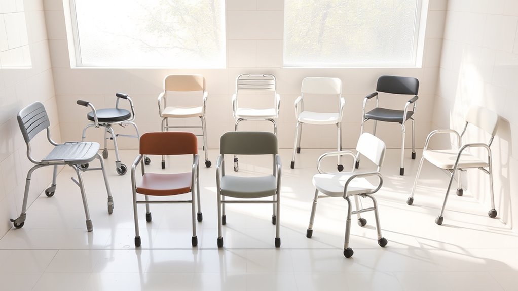 Choosing a shower chair that adapts to different needs can make a significant difference in the daily routines of disabled seniors. I’ve found that versatile chairs, with removable arms and backrests, cater to individual preferences and mobility levels. Adjustable heights are a game-changer, too, allowing customization for various bathroom setups and user heights. I appreciate models that come with built-in handles, showerhead holders, or drainage holes, as they enhance usability and safety. The ability to switch between configurations—like using it with or without back support—adds to the chair’s adaptability. Plus, many versatile shower chairs work well in both bathtubs and walk-in showers, ensuring they fit seamlessly into any bathroom environment.