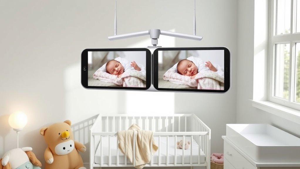 Imagine watching over your little one in a moonlit room—night vision makes this possible. Yes, many dual-camera monitors feature infrared night vision, allowing you to see clearly even in complete darkness. I’ve used a monitor with this feature, and it’s like having a flashlight in the dark—peace of mind when checking on your baby late at night. Most quality models include this essential feature for round-the-clock monitoring.