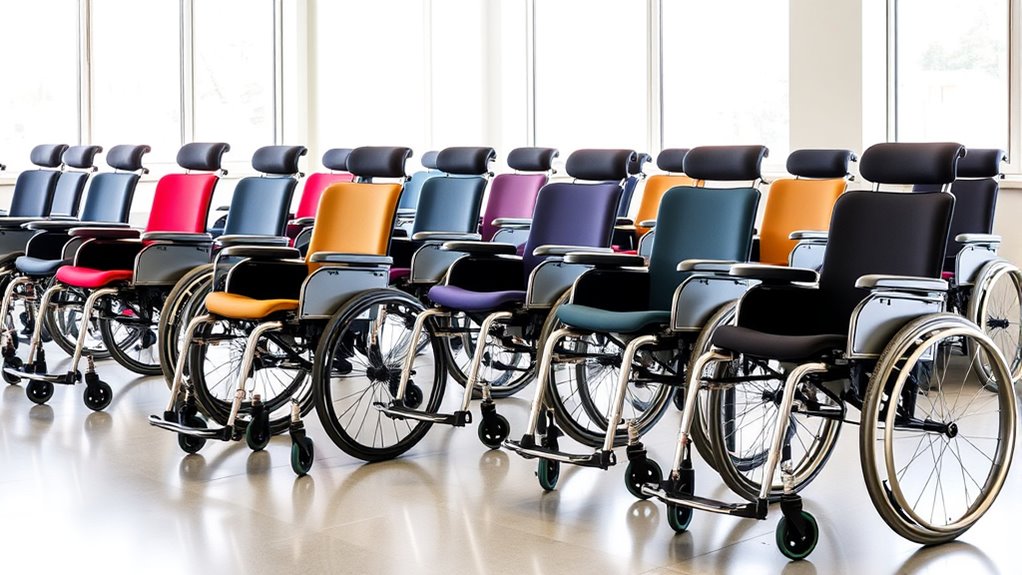 Selecting a wheelchair that prioritizes comfort and support is vital for bariatric patients, as it directly impacts their overall well-being. I recommend choosing models with wider seats, typically 24 inches or more, to guarantee ample space. Padded, supportive cushions are essential too; they help distribute pressure evenly, reducing the risk of pressure sores. Look for ergonomic armrests and adjustable leg supports that allow for personalized comfort. Cushioned, adjustable backrests provide customizable lumbar support, enhancing spinal alignment. Additional features like headrests, immobilizers, and extra padding can considerably improve comfort during prolonged use. Considering these elements will help you find a wheelchair that meets specific needs while promoting a better quality of life for bariatric patients.