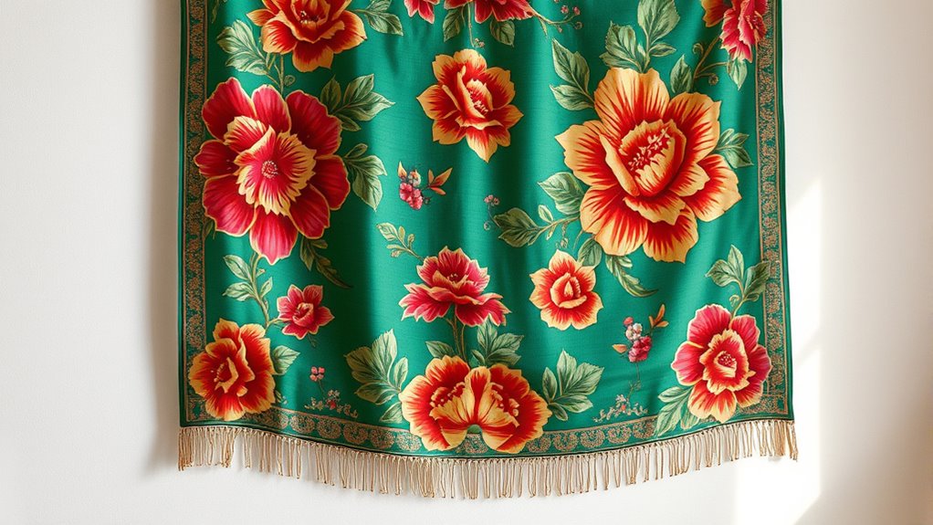 When choosing decor styles to complement silk wall hangings, I look for settings that highlight their elegance. Classic, vintage, or bohemian interiors really make silk tapestries stand out, adding texture and sophistication. I avoid overly modern or minimalist spaces that might clash with their ornate details. Instead, I prefer warm color palettes and cozy furniture to create a harmonious look that elevates my home’s aesthetic effortlessly.
